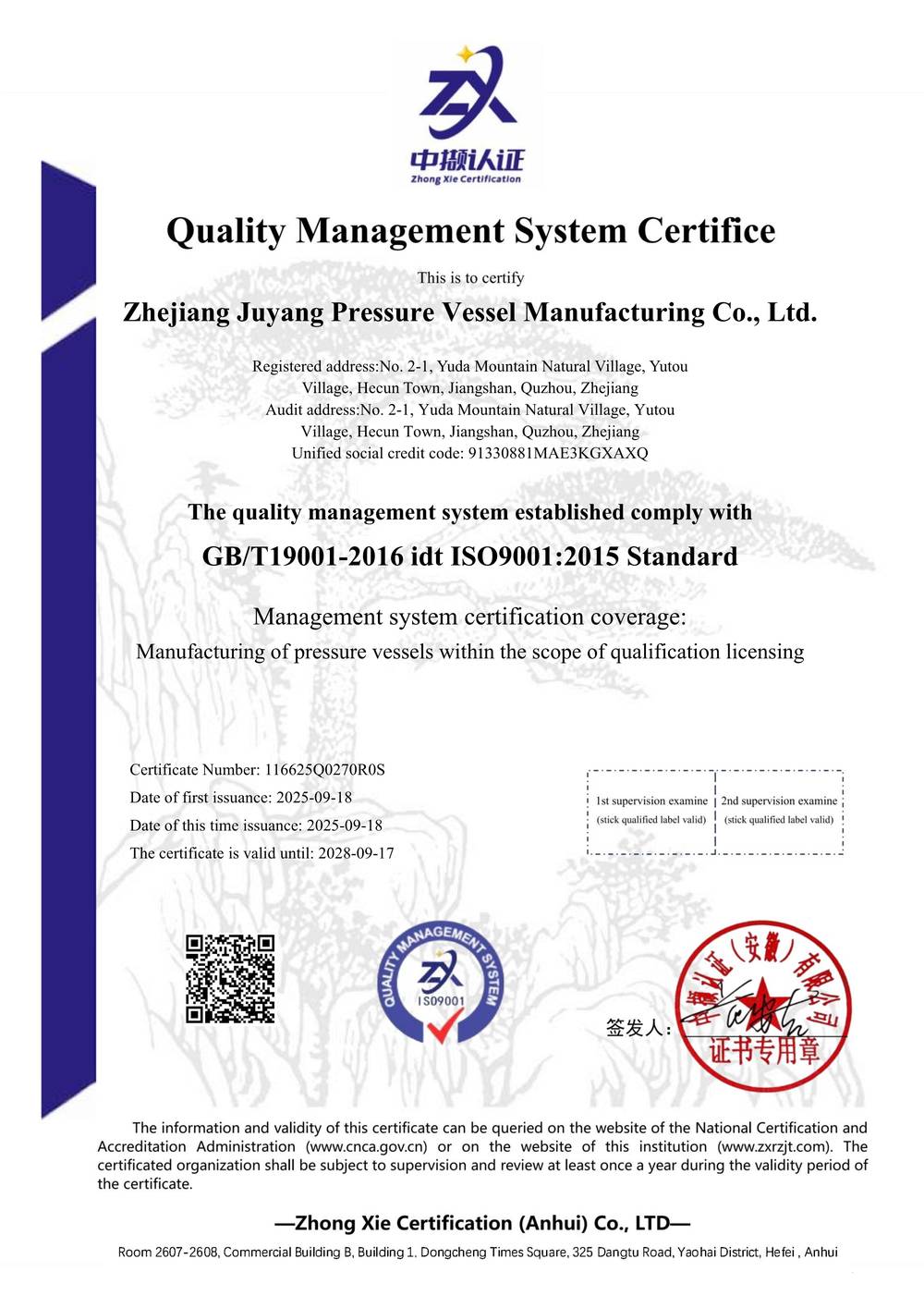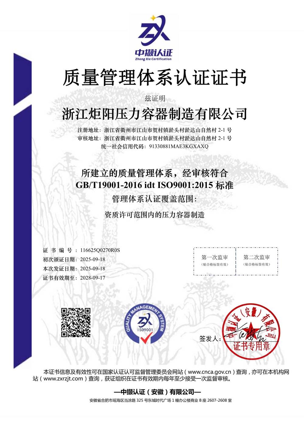 质量管理体系认证证书